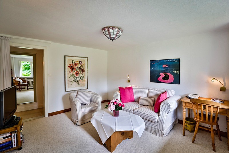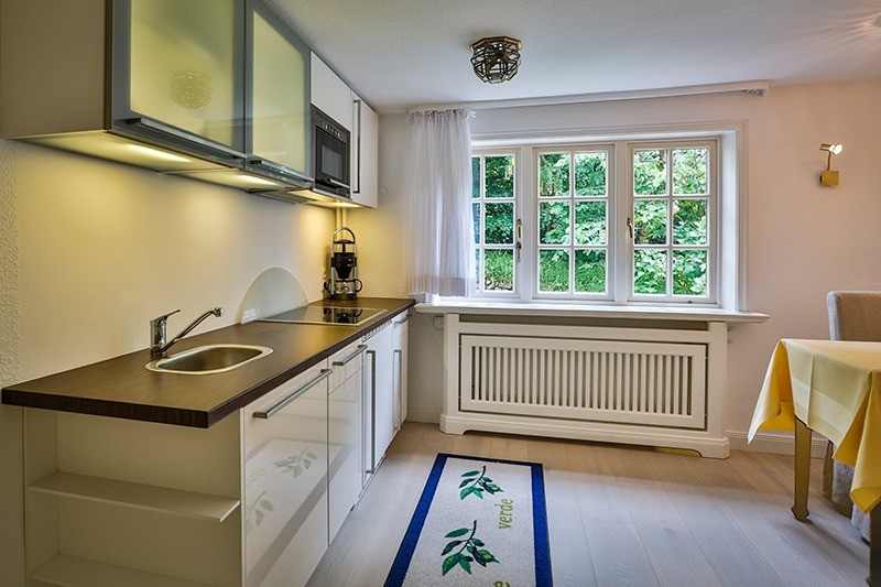 Sie verfügt über ein nach Süden ausgerichtetes Wohnzimmer und einem Schlafzimmer mit Treca – Betten. Die gut ausgestattete Wohnküche hat einen Essplatz für zwei Personen. Badezimmer mit Dusche und WC.