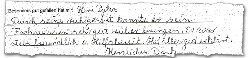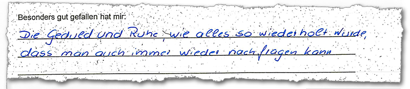 Hier einige Kursbewertungen - anklicken um es vergrößert zu sehen